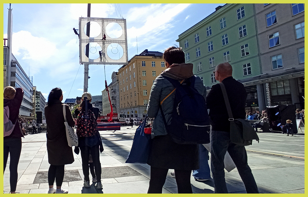 Bergen es la segunda ciudad de Noruega, no por eso deja de ser casi un pueblo, se rrecorre facilmente a pie y es una ciudad con aspecto alegre, lo digo porque en Noruega es dificil ver a gente fuerade sus casa, eso en verano. Por eso nos sorprendió el ver espectáculos callejeros, gente paseando, las terrazas llenas, hasta una especie de desfile callejero que no llegamos a saber que se celebraba.